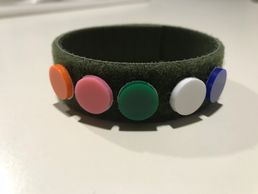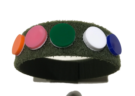 We use a military grade Velcro for the band with Acrylic colored chips that match our “Clip My Lip” tagging system.